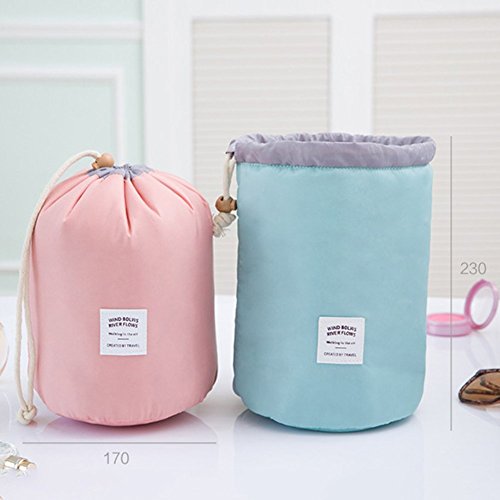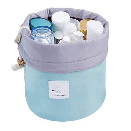Drawstring Travel Cosmetic Storage Bag Waterproof Women's Toiletry Bag Wash Bag Makeup Kit (Light Blue)