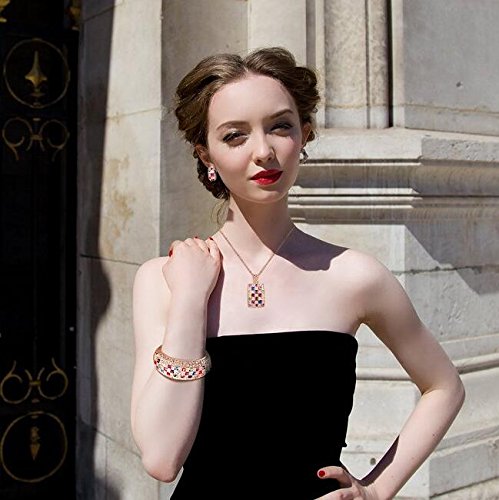 - Feature : Specifications: 1.Necklace Chain Length:15.75 inches +1.97 inches. Pendant Height:1.65 inches. Pendant Width: 0.8 inches. Earring Height: 0.8 inches, Earrings Width: 0.47 inches. Bracelet interior diameter: 2.2 inches. | 2. Total Weight: 5.1 ounces. | 3. Main Stone: SWAROVSKI ELEMENTS Crystals. Stone Color: Multicolor | 4.Metal Type:Eco-friendly Rose Gold Plated Alloy. / Cubic zirconias are pronged to the jewelry item to secure from loosing. A prong setting is one component of what is known in the jewelry business as a head, a claw-shaped type of binding (typically 3, 4, or 6 individual prongs per head) that is welded or soldered to a jewelry item in order to mount (or set) a stone to the jewelry item. / Brass Metal is much smoother and will protect your skin from rubbing. You will feel comfortable when wearing it. Also, jewelry made by brass metal has light weight. / Wrapping: Come with a gift box. If you need assistance please contact us. / Designing Philosophy:1.Every woman is an innocent children. They are eager for the distant places and they maintain an innocent heart to feel the brilliant and beautiful world. Be brave to pursue the beautiful fairy tale in your heart , because it is the privilege of being a woman! 2.Jewelry itself has no value, but the jewels which can make women shining are priceless! 3.Wearing ordinary jewelry, people remember that jewelry. Wearing elegant jewelry, people remember the woman who wears that jewelry.