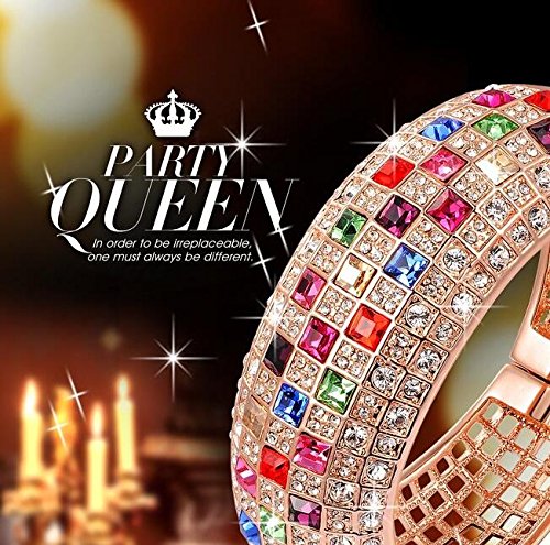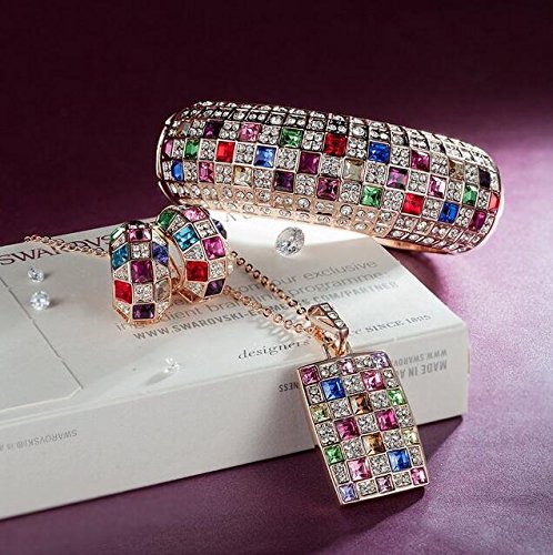 - Title : Fashion Jewelry Collection "Party Queen" Rainbow Multicolor SWAROVSKI ELEMENTS Crystals Necklace Pendant Cuff Bangle Bracelet Earrings Rose Gold Set Fashion Statement Costume Jewelry Sets Luxury Jewel Box Gift Packing - Three Layers Real 18K Rose Gold Fashion Jewelry