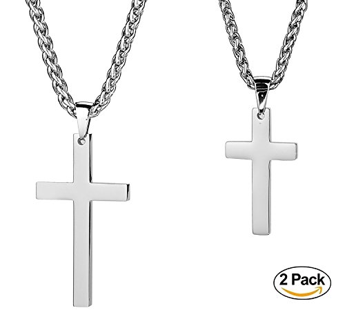 -. Feature : AVALIABLE SIZES - For stylish men cross size:1.89''*1.06'',with 24 Inches 4MM wheat chain. For stylish women cross size:1.37''*0.78'',with 20 Inches 3MM wheat chain,2pcs simple cross with firm chain provided / HIGH QUALITY STAINLESS STEEL-Strict quality control for the stainless steel raw material, exquisite craft for the polish, great chain for rust, corrosion and tarnish resistant / SOLID CHAIN CLASP- Improved Lobster Clasp, Easy to use and better quality / PERFECT GIFT - The simple cross necklace is holy,pure religious symbol of your belief of love and salvation.Comes with the Trusuper BLACK WHITE GIFT BOX and the blue adorable velvet pouch / WARRANTY- Any problem for the simple cross, we promise 90days money back