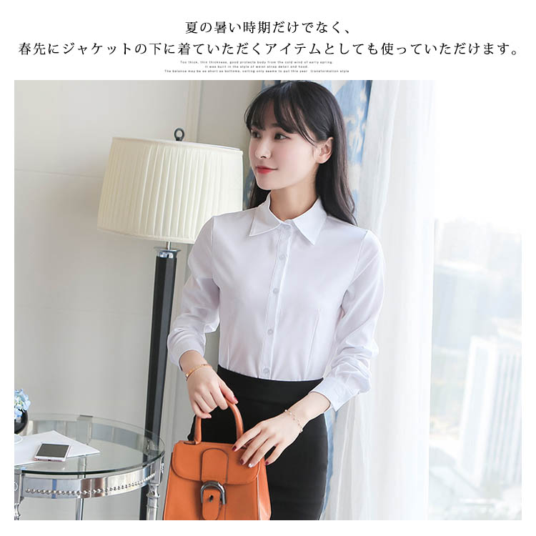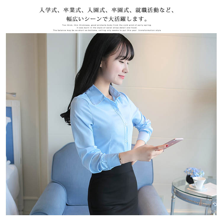 | 大活躍する定番のシャツが新登場です。シンプルなデザインは着回しもしやすく、スカートにもパンツスタイルにも合わせやすくなっています。夏の暑い時期だけでなく、春先にジャケットの下に着ていただくアイテムとしても使っていただけます。入学式、卒業式、入園式、卒園式、就職活動など、幅広いシーンで大活躍します。 | |