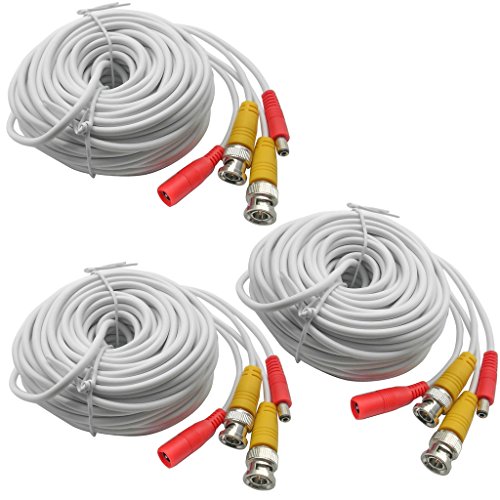 3-Packs 49Ft. White, Pre-made All-in-one BNC Video and Power Cable Wire with Connector DC 2.1mm for CCTV Surveillance Security Camera