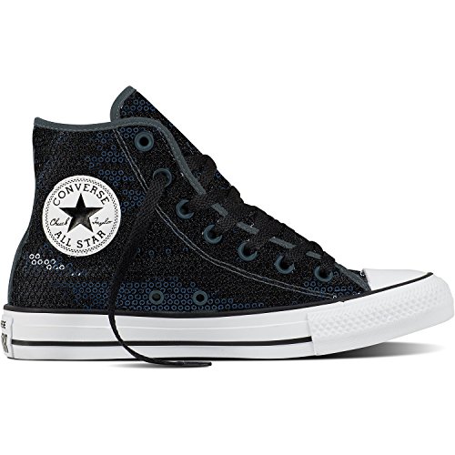 -. Binding : Apparel -. Brand : Converse -. Color : Midnight Indigo/Black/White -. Department : womens -. Feature : Add a lil' sparkle in your day and have a blast doing it in a pair of the women's Chuck Taylor® All-Star® Sequins Hi sneakers from Converse®. / Sequined-canvas upper for a look that shimmers. / Signature Chuck Taylor® rubber toe box and textured toe bumper, tonal sidewall trim, medial-side air vent holes and classic All Star® heel patch. / Canvas lining and a cushioned footbed for a secure fit and comfort. / 100% Authentic. -. Label : Converse -. Manufacturer : Converse -. Model : 557923C -. ProductGroup : Shoes -. ProductTypeName : SHOES -. Publisher : Converse -. Studio : Converse -. Title : Converse Chuck Taylor All Star Sequin Hi Midnight Indigo Textile Trainers