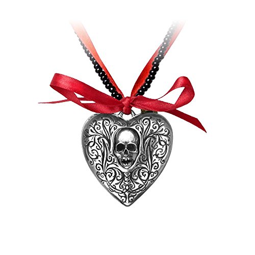An ostentatiously sized embellished heart locket, to take a generous memento picture; with inner mirror, brass top hinges, magnetic catch and a unique 21" black bead and red ribbon necklace.The inside part is heart shaped so you may have to cut the picture to get a better fit, the size across the heart from left to right is 40mm, and from top to bottom is 35mm at its highest point. the recess is about 1mm deep.Feature
