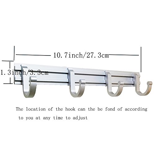 FF Elaine Solid 4 Adjustable Positions Towel Hanger Wall Mount Rack Hook Coat Clothes Hooks - 6063 Aluminum Matte Silver Finish