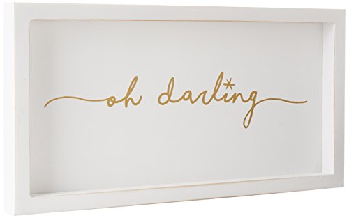 -. Feature : White-washed wood plaque features raised thick wooden border, gold glitter P.R.Inted sentiments and hangs with saw tooth hardware. / Oh darling plaque measures 6" x 12". / From Mud Pie