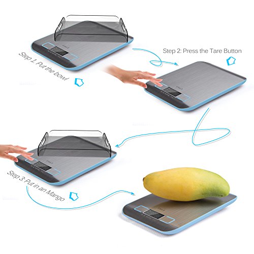 Multi-function Kitchen Scale Perfect for weighing your ingredients and know exactly how many ounces(or grams) you are dealing with. The scale has a 11lb/5kg capacity. You can also use as coffee scale