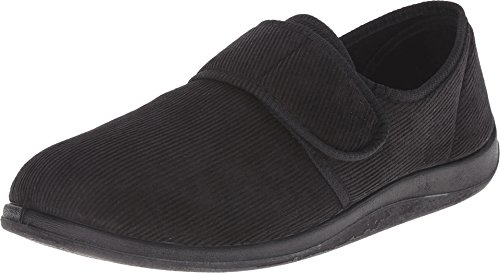 Product DescriptionHook-and-loop strap for an adjustable fit. Cushioned fabric lining. Padded memory foam insole. Durable rubber otusole. Imported.0