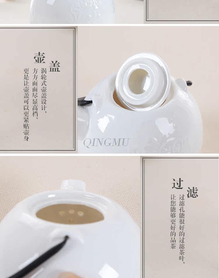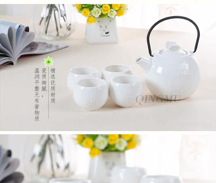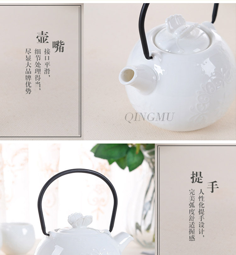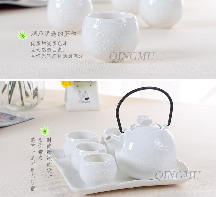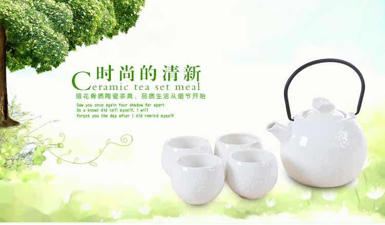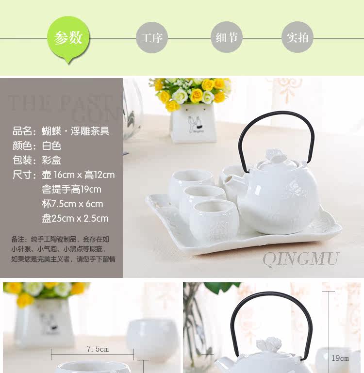 日式蝴蝶浮雕陶瓷茶壶 一壶四杯功夫茶具茶壶茶杯套装配底盘