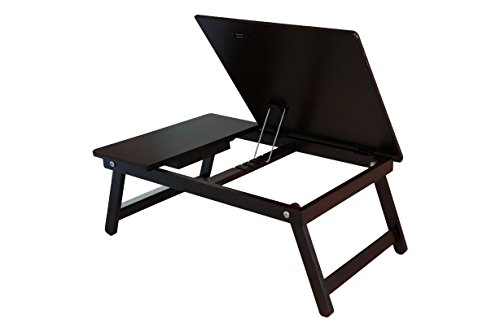 -. Title : Portable Bamboo Walnut laptop Lap Desk with Drawer, Foldable Legs
