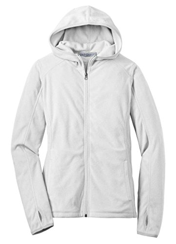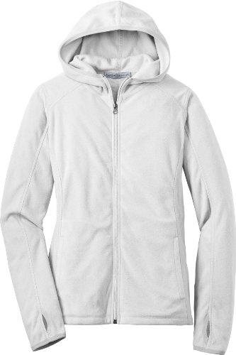 Studio : Port Authority Publisher : Port Authority Binding : Apparel Product Description This super soft microfleece hoodie will add extra warmth to her early morning walks. A real value this full-zip hoodie has slimming cut lines and an anti-pill finish to help ensure long-lasting good looks.7.5-ounce 100% polyester microfleece100% polyester tricot pocketsGently contoured silhouetteClear coil zipper with dyed-to-match chain stitching and taping; grey chain stitching on WhiteNon-zippered front pocketsOpen cuffs and hemThumbholes to keep hands warm 0