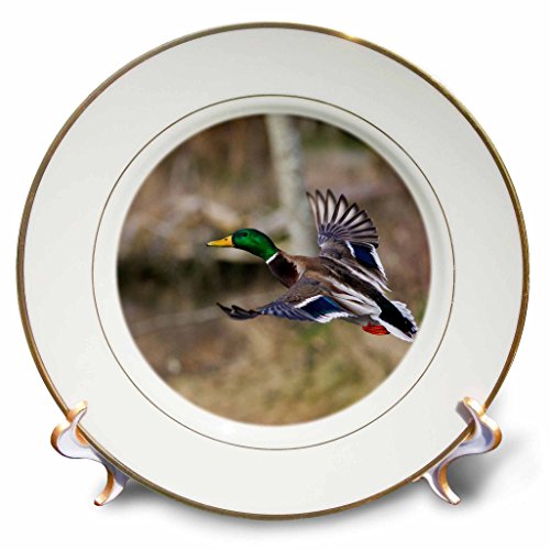3D Rose Mallard Drake Flying Porcelain Plate, 8"