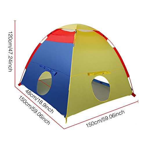 2.Built for years of play time, the structural support of the tent comprises of two heavy duty shock-corded poles that's safe, light weight, and easy to setup.