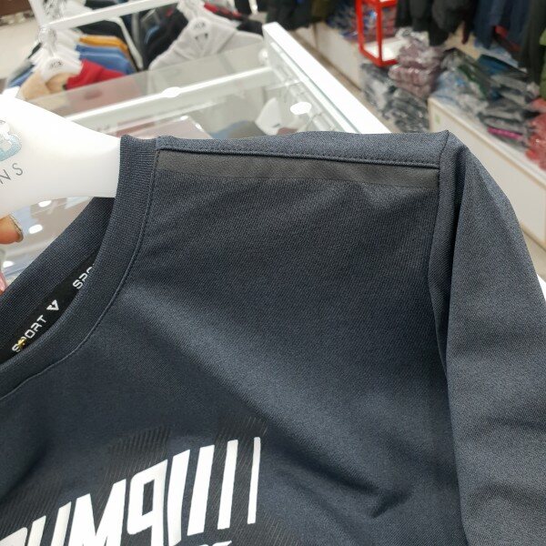 2019년 봄 상품입니다. 스포츠소재 티셔츠로 앞면에 레터링 되어있습니다.신축성,통기성이 좋고 하늘하늘한 소재로 운동할 때 입기 좋습니다.소매에 시보리가 있어 통통한 친구들이 입기 더욱 좋습니다. 팔과 몸통이 연결되는 옆구리에 통풍을 돕는 부분이 있습니다.
