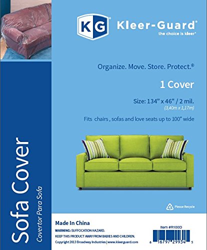 -. Binding : Kitchen -. Brand : Kleer-Guard® -. Color : Clear -. EAN : 0616797296573 -. Feature : Clear cover helps protect sofa during moving, storage or during home renovation. / Cover Size: 134" x 42". Fits sofa up to 100" wide. / Enhanced strength 2 mil. DESIGNED FOR TEMPORARY USE ONLY. / For moving or temporary storage only. Reusable. / Made in the USA -. IsAutographed : 0 -. Label : Kleer-Guard® -. Manufacturer : Kleer-Guard® -. Model : R10020 -. ProductGroup : Home -. ProductTypeName : HOME -. Publisher : Kleer-Guard® -. Studio : Kleer-Guard® -. Title : Kleer-Guard® Sofa Cover. Help Protect Your Furniture Against Dust, Spills and Stains. Fits Sofa Up To 100" Wide./2 mil. -. UPC : 616797296573