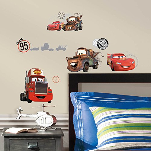 Studio : RoomMates Publisher : RoomMates Binding : Kitchen Product Description Transform any room in minutes with RoomMates peel-and-stick decals -- the easiest, fastest, and most affordable way to decorate any room or flat surface. Bring the action of Disney Pixar's Cars to any wall. Printed on opaque material, these wall decals are suitable for any wall color. The decals assemble easily, just like a puzzle, and each of the pre-cut elements can be moved around at any time without damage. Because they never leave behind any sticky residue, RoomMates wall decals can be easily repositioned as often as you like without any damage to your walls. RoomMates wall decals are non-toxic and free of harmful chemicals like phthalates and lead. They are fully CPSIA-compliant, and have undergone many rigorous safety and flammability tests. RoomMates wall decals use a special adhesive that grips the wall tightly but doesn't form a bond, so that it lifts easily without damage or remaining residue. And you'll be able to remove and reposition your wall decal without reducing its adhesive grip. Easy to Apply RoomMates wall decals arrive printed on one or more sheets and packaged in a protective plastic shell. Unfold the sheets and spread them out on a flat surface. Peel the first wall decal from the sheet, bring it to the wall, and slowly smooth the decal from top to bottom while pressing firmly. If you need to reposition the decal, simply peel it away from the wall and re-apply it. You can stick RoomMates wall decals on just about any smooth surface, including walls, ceilings, doors, windows, mirrors, furniture, chalkboards, window shades, and desks -- even vehicles. Just make sure the surface is smooth to the touch and that it's fully cleaned before applying the wall decal. Don't apply wall decals to unfinished wood, rugs, fabrics, clothing, or other textiles as the fibers can render the adhesive ineffective very quickly. 0