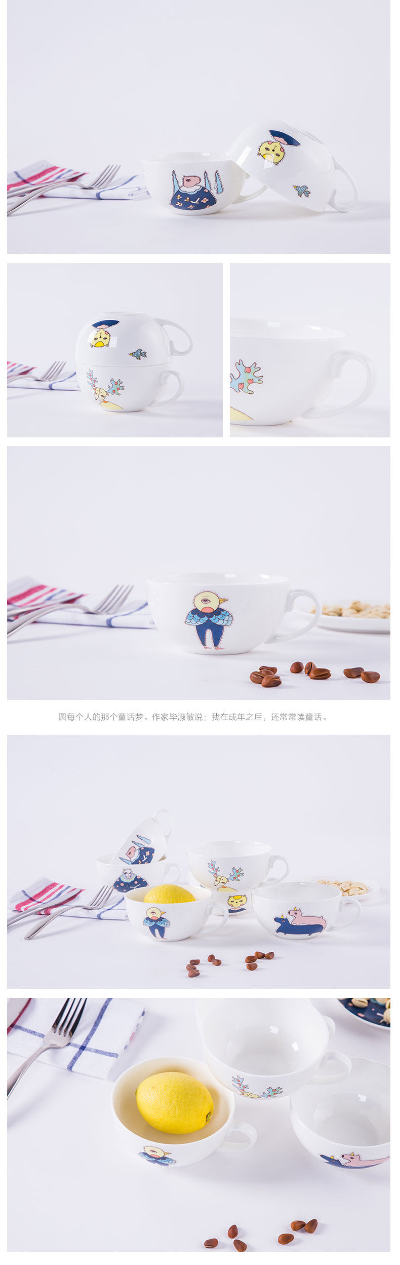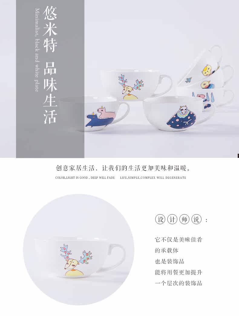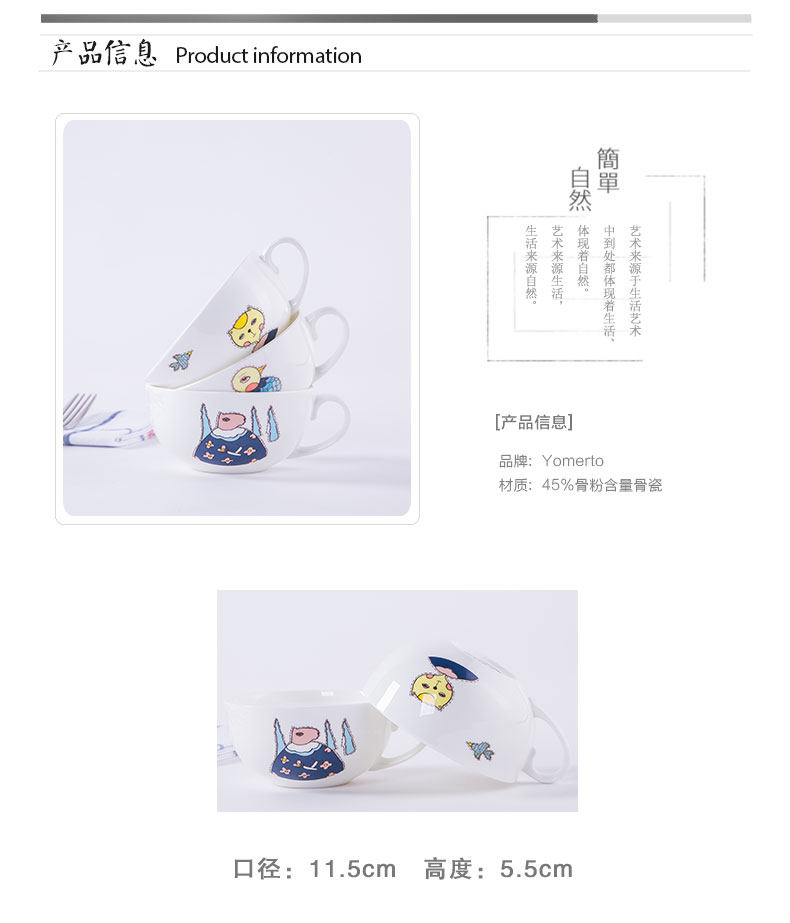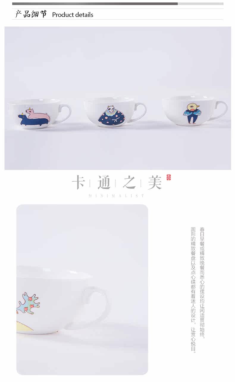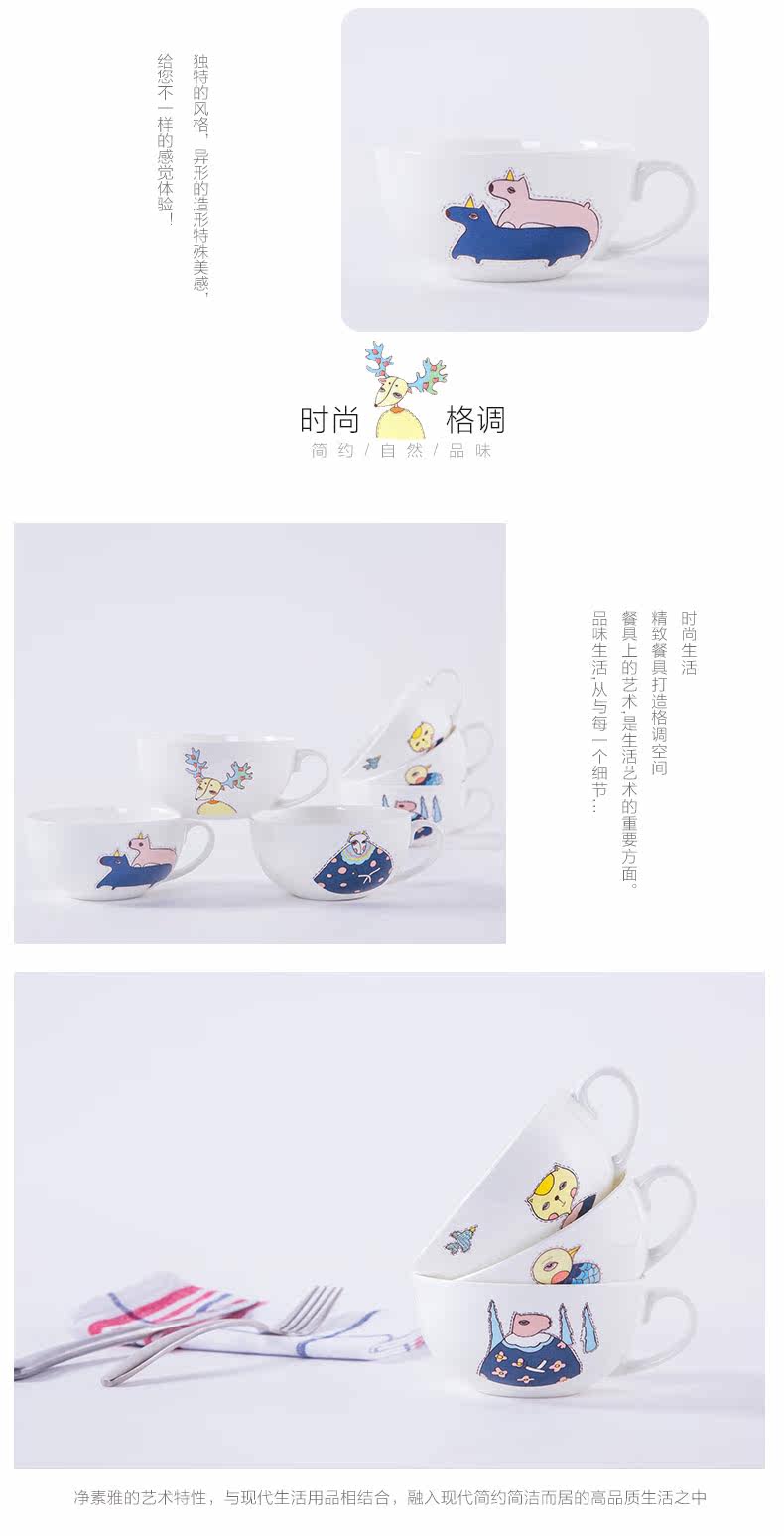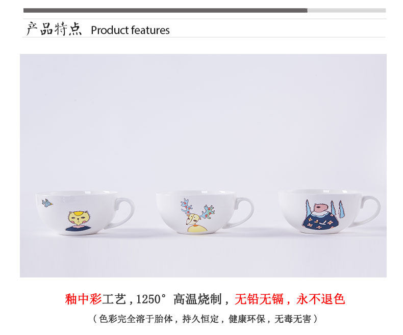 早餐杯粥碗卡通骨瓷杯子陶瓷器大号麦片杯大容量牛奶杯燕麦杯创意