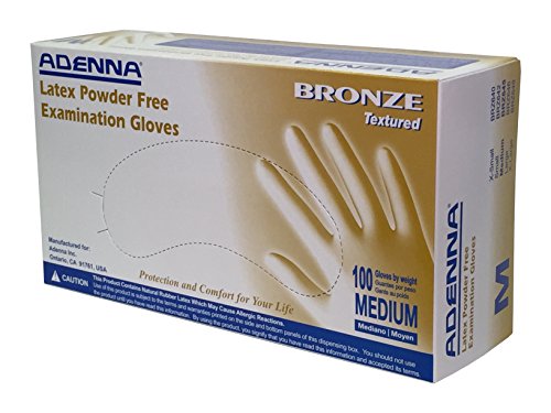 Adenna Bronze 5 mil Latex Powder Free Exam Gloves (White, Medium) Box of 100