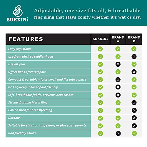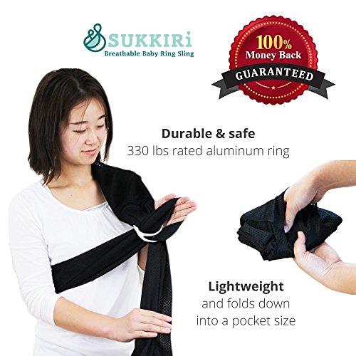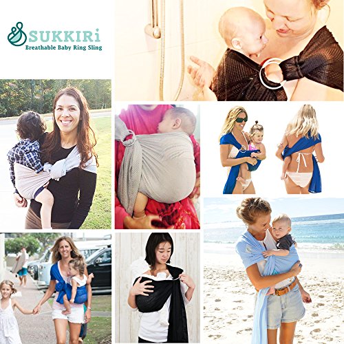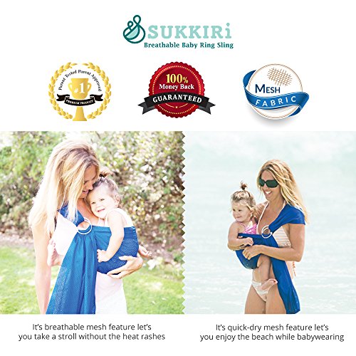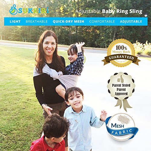 -. Feature : Lucky Baby's SUKKIRi is a Top Rated baby sling, and the Original. It's light weight, breathable & cool for the really hot summers, making baby wearing easy. Both Moms and Dads can use this mesh ring sling - it's Excellent for beach/pool vacations - the fabric is soft and comfortable in and out of the water and dries quickly. / Offers Ergonomic & Lumbar Support, and received recognition from the International Hip Dysplasia Institute for being "hip-healthy" - see images. Sukkiri is a Premium Quality Carrier which offers Hands Free Support, and is comfy for both Parents & Babies. With aluminum rings, it's adjustable-use for newborns or toddlers AND it's great for skinny or plus sized parents; tall or short parents. / Compact and portable. Folds up nice and small so you can keep it in your purse or pocket for when you are running errands OR traveling OR if you have a clingy baby who does not want to be put down. Top and Bottom Rail are easily distinguishable for easier adjusting. / Great baby gear whether you're at home or travelling because it's Comfy & Super Easy to use. Use it for privacy while breastfeeding. Carry baby in different positions: Front facing, side on either hip or backpack. Use knot-less ties for infants and knotted ties for toddlers and heavier babies. / Fabric is so soft and won't rub against your neck, it's easy to clean, great quality, machine washable, and it's pretty too. For more information, please scroll down to check out the Description.