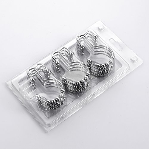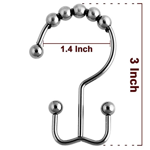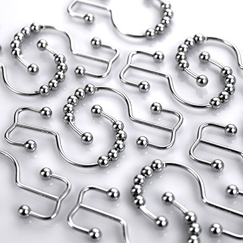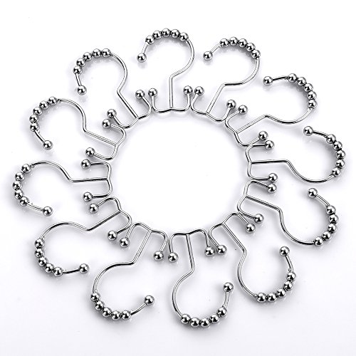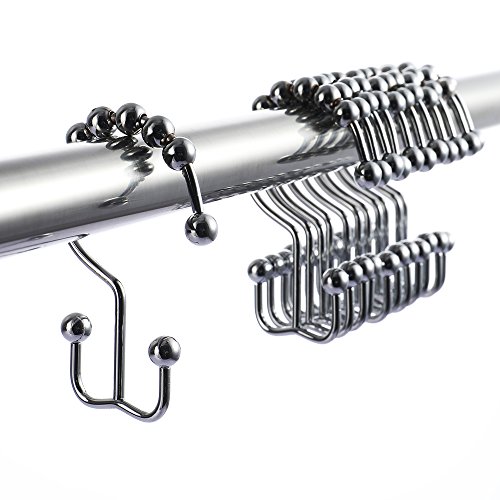 UMIRIO Double Glide Shower Curtain Hooks Stainless Steel Shower Rings Round Rollers For Shower Rod Set of 12 Pcs Chrome