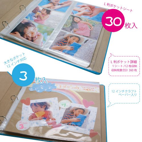 부담없이 수납 할 수 있는L판 포켓30매와,자유롭게 레이아웃 할 수 있는12인치 씨트3 매쌍으로 판매중!