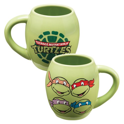 Vandor 38062 Teenage Mutant Ninja Turtles 18 oz Oval Ceramic Mug, Green, Red, Purple, and Orange