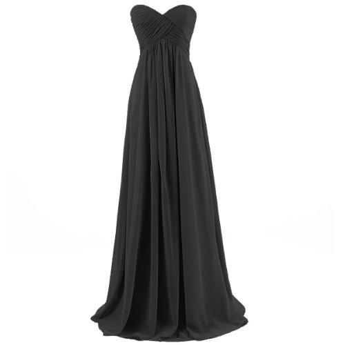 With its sweetheart neckline, formfitting bodice, empire waist, zipper-up back, and long chiffon skirt, this ethereal frock is worthy of celebration!