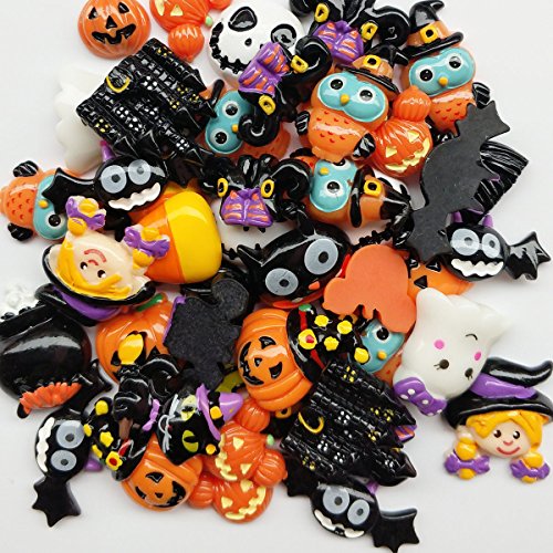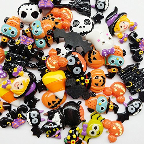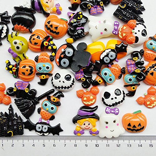 Chenkou Craft Ramdom 20pcs Mix Lots Resin Flatback Flat Back Halloween Craft Embellishment Wizard Pumpkin Lantern Ghost Spider Skull Castle