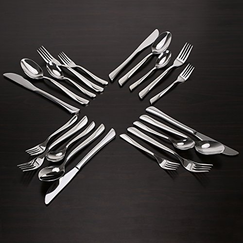 Studio : INTEY Publisher : INTEY Product Description We want you be happy with your purchase! INTEY 20-piece Stainless Steel Flatware Set is a nice full set service for 4, which consists of 4 knives, 4 table forks, 4 salad forks, 4 table spoons and 4 tea spoons. This flatware with simple design is practical and fit any style tableware. It has a proper thickness and weight to hold comfortably. It is a value multi-purpose set for daily use or when you need extra flatware set when having parties/gatherings/camps... Also a great gift for your friends' new apartment. INTEY offer 24 months warranty for this professional Flatware Set after the date of original purchase. If there is any questions or suggestions, welcome to contact INTEY after-sales directly at any time.