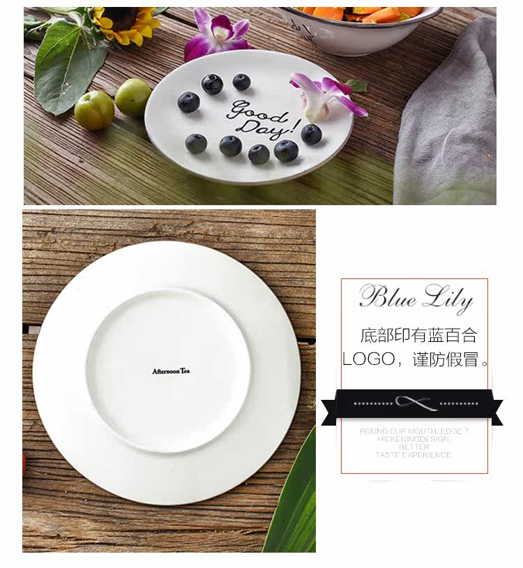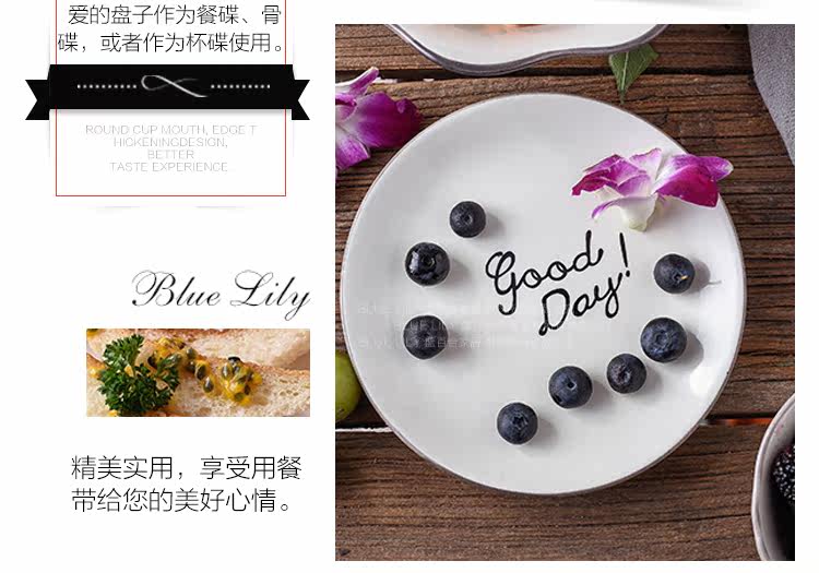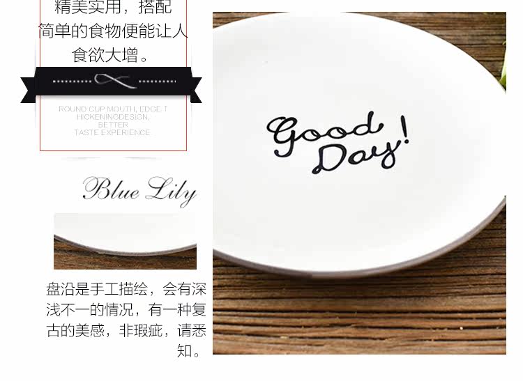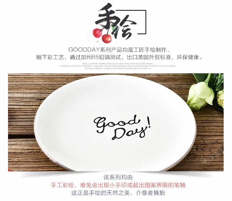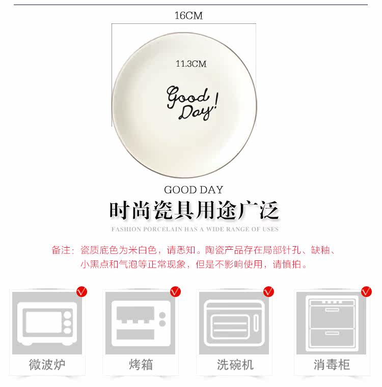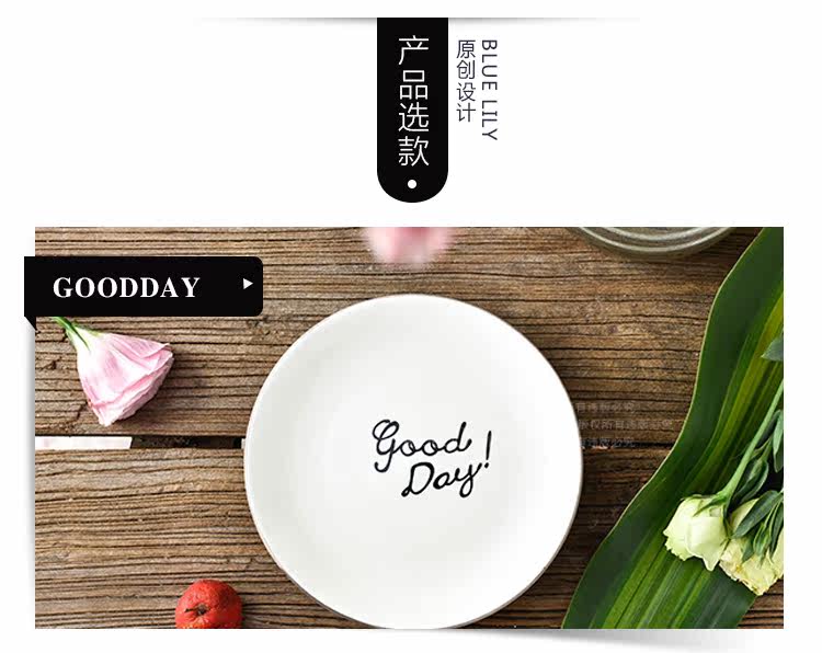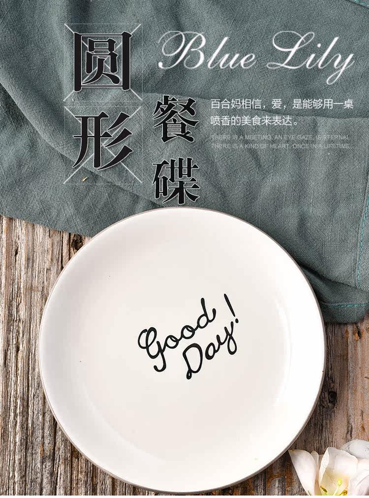 日式简约英文goodday西餐小骨碟6英寸餐碟饭碗托盘配菜碟陶瓷平盘