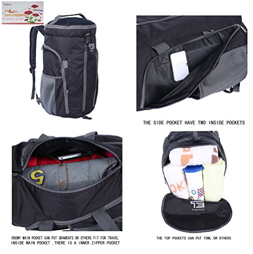 -. Brand : somiss -. Department : mens -. Feature : PADDED AND ADJUSTABLE WIDE SHOULDER STRAPS with breathable mesh back more comfortable,avoid turning and folding in the slider / WATER RESISTANT RIPSTOP NYLON FABRIC / VERSATILE : Can be as a sports backpack or a sports duffel bag / DUARABLE SBS zipper with metal TIBAG zipper puller , can be long lasting use.FRONT HOOK FOR HAT OR OTHER EASY ACCESSORIES. / AIRPORT HERO: avoid overweight charges, simply unfold from your lage and use it as a carry on for your excess baggage. -. Model : SPB7 -. PackageQuantity : 1 -. ProductGroup : Apparel -. ProductTypeName : LAGE -. Title : 35L/40L Foldable Travel Waterproof Daypack Lightweight Sports Duffel Backpacks Bag