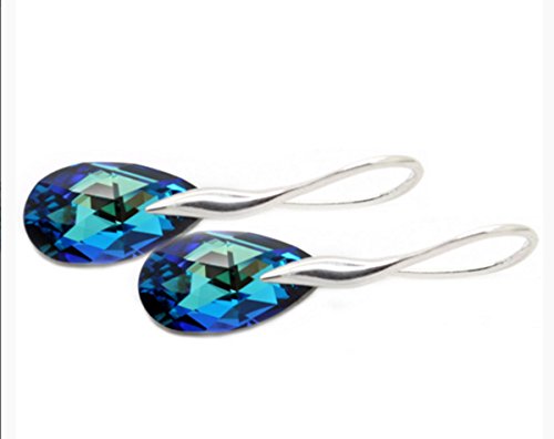 - Feature : Lovely Silver Earrings for a more youthful, vibrant appearance made with 16mm Teardrop Blue Swarovski Elements total length:34mm / Absolutely charming Ladies Drop Earrings / These stunning earrings for women are Perfect gift for Birthday, Valentine's Day Mother' Day, Christmas / The blue earrings contain the Swarovski Seal (certificate of authenticity of the products made with Swarovski Crystals)