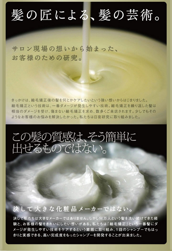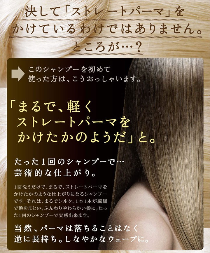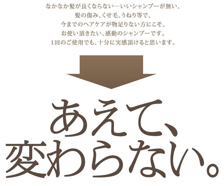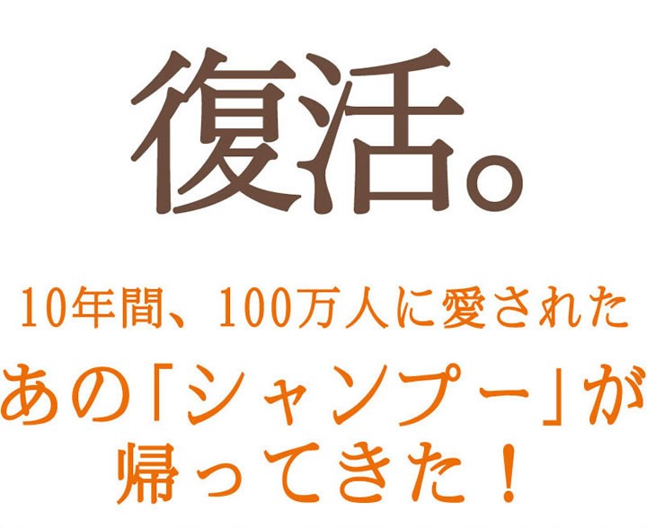 | ご使用方法 | よく濡らした髪に適量をつけて、十分に泡立てて洗い、よくすすいでください。二度洗いをおすすめします。 |
