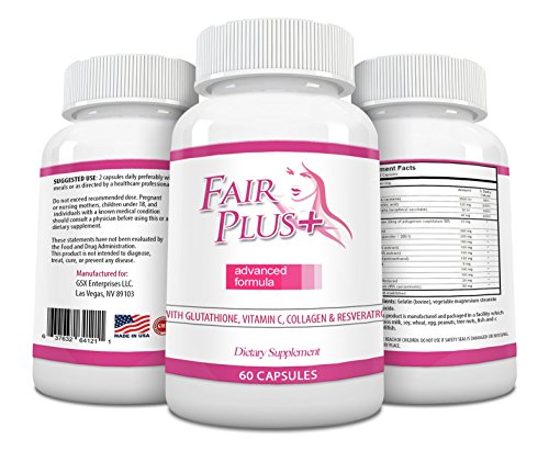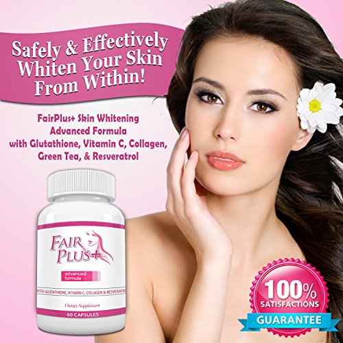 -. Title : FairPlus - Skin Whitening Pills Advanced Formula for Fair and Beautiful Skin with Glutathione, Vitamin C, Collagen, Green Tea, & Resveratrol. Safely and Effectively Whiten the Skin on Your Face & Body from Within. (60 Capsules)