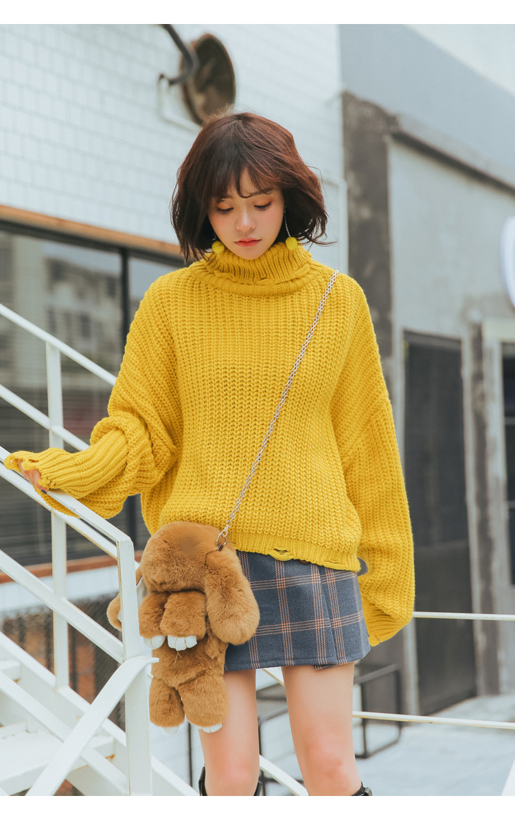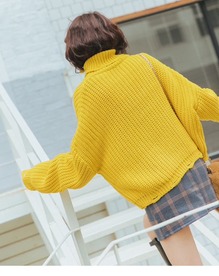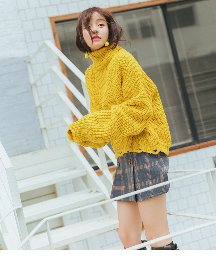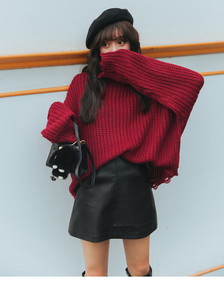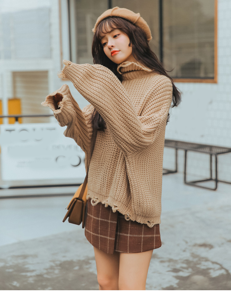 ふわふわでポコポコとしたワッフルの編地が可愛いハイネックプルオーバー。