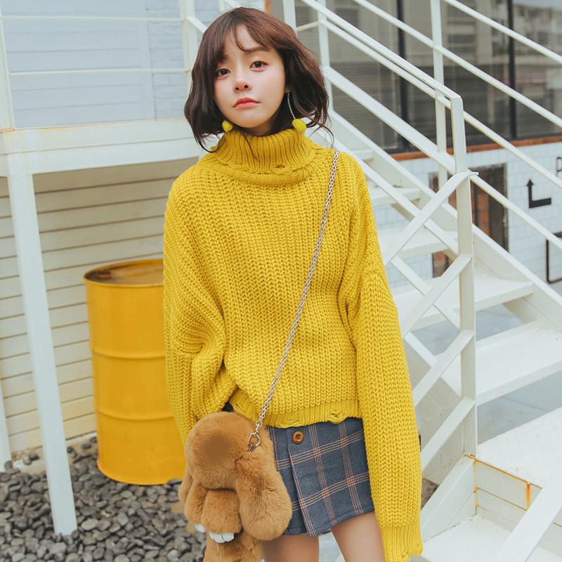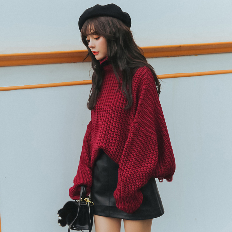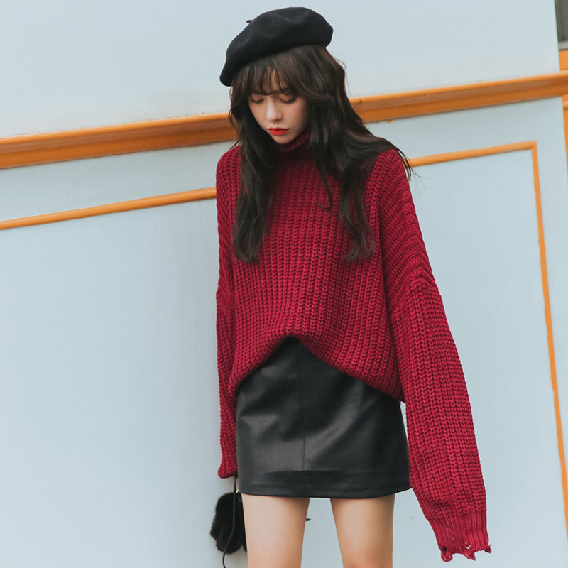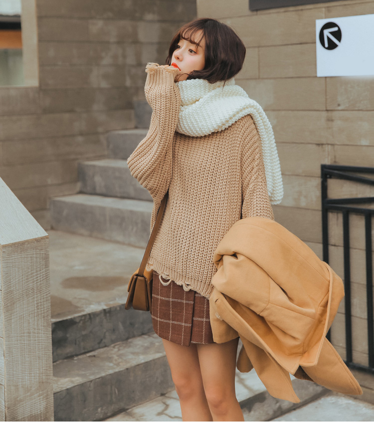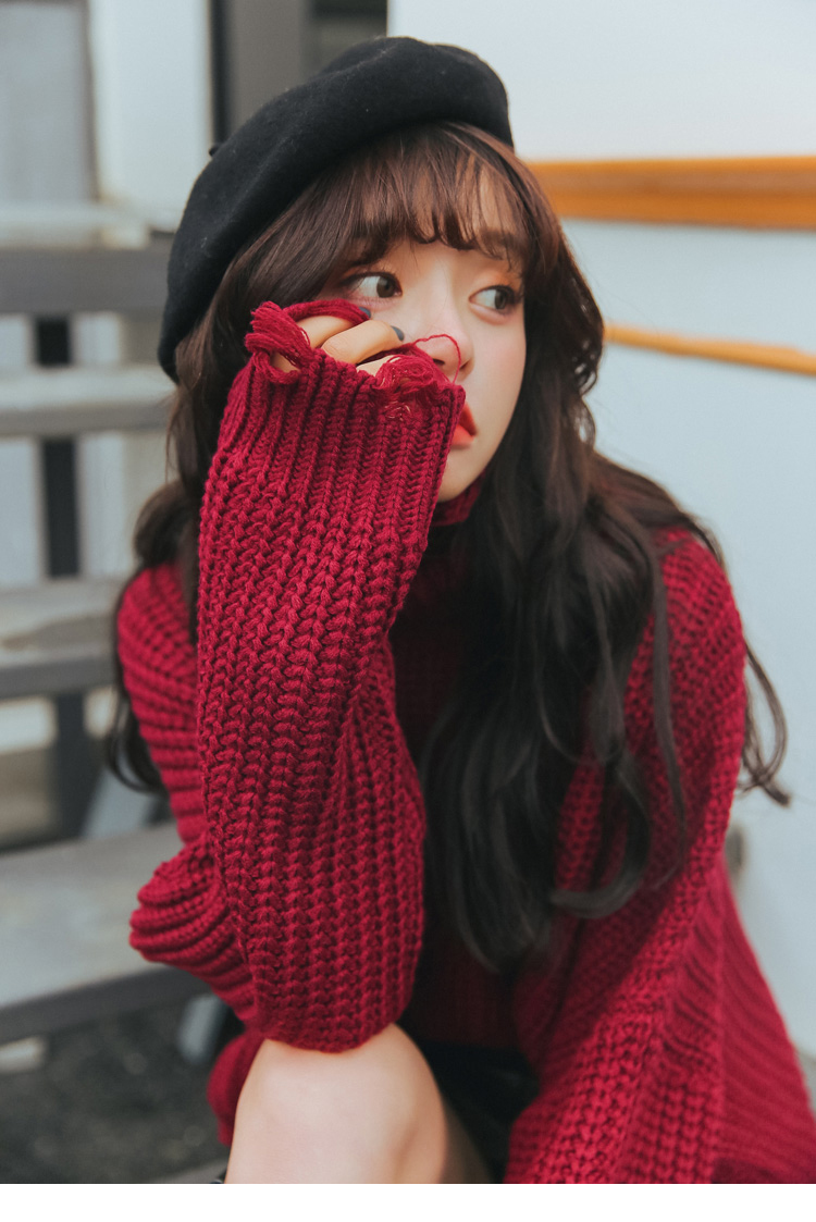 ふわふわでポコポコとしたワッフルの編地が可愛いハイネックプルオーバー。