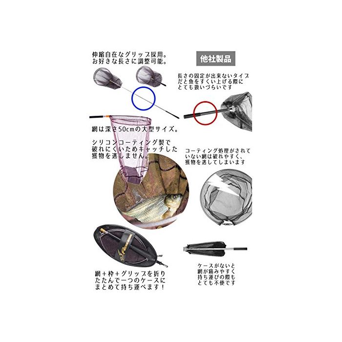 원본상품명: ASTARTE(アスタルテ) 玉網 折りたたみ 伸縮 シリコンコ?ティング網 ケ?スセット 1.94m