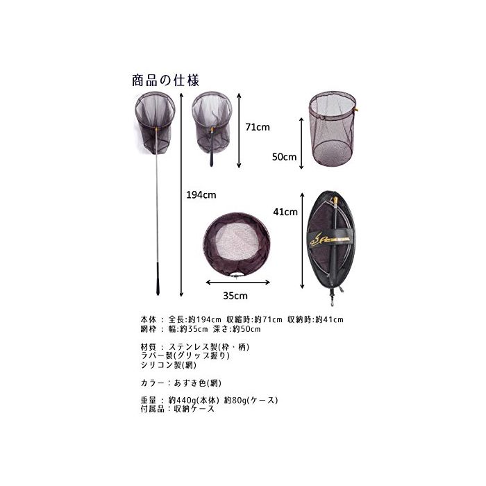 ◆본체 : 전장:약194cm 수축 시:약71cm 수납 시:약41cm ◆망테두리 : 폭:약35cm 깊이:약50cm