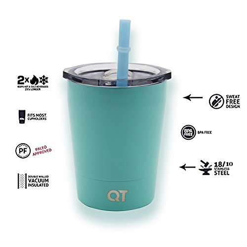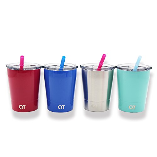 Studio : Quality Tumblers Publisher : Quality Tumblers Binding : Baby Product Product Description QT Colored Stainless Steel Tumbler/Sippy w/ Straw Lid ?Our 18/10 Stainless Steel cups far outweigh the quality of our competition! With 100% handbrushed stainless steel, your child will have the highest quality cup on the market! ?With 4 different styles to choose from, your child's personality can show! By us not packaging our cups in twos, you can select the exact two colors that you want. ?Our double wall, vacuum insulated cups will keep cold drinks cold for hours, and hot drinks for hours.