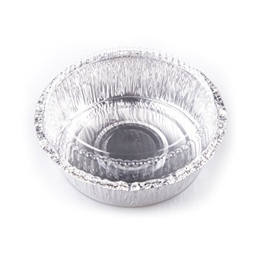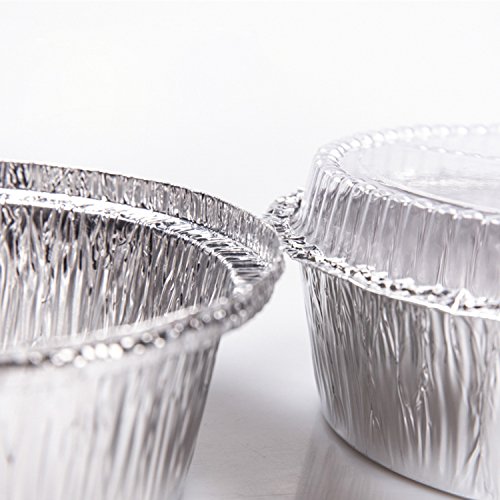 Feature 50 pans and 50 lids, perfect for baking or reheating food in the oven as well as storing left over food in fridge or freezer. 6 Inch disposable aluminum foil pan are stackable for easy storage and kitchen organization. Bake and serve in the same container, ideal for any types of baked dishes, pasta, casseroles, appetizers, desserts, etc. Heavy gauge aluminun pan and lid locks in food temperature and flavor and provides safe transport. Made of 100% Eco-Friendly recyclable aluminium.
