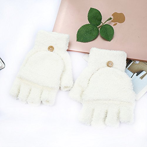 Package Including 1 x Half Finger Gloves Winter Warm Fingerless Gloves Soft Coral Velvet Mittens Short Gloves Hand Warmer Costume Christmas Gift for boys Girls (White) 0