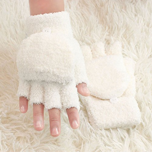 Feature - Color: White. - Material: Coral fleece. - Size: About 15 x 2 x 1cm/5.9 x 0.8 x 0.4inch. - Made of premium material, the gloves are soft, comfortable and skin-friendly. - Easy to wear and remove. - Thick design can keep your hand warm in cold weather. The stylish and popular half-finger design make you even more fashion in winter. - Perfect for texting, using a tablet or computer. - An awesome Christmas gift, birthday gift, New Year gift, or anniversary gift, etc.