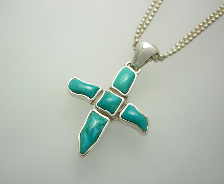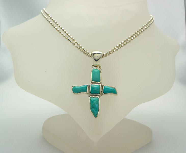 クロスタイプのターコイズを使ったネックレスです☆ターコイズのキレイなブルーがポイントになり、胸元が華やかになります!!ひとつ着けるだけで、存在感バッチリです☆☆お得なシルバーチェーン付き!!チェーンは在庫状況により、写真と異なる場合がございます。ご了承下さい。