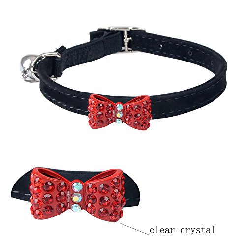 ()/Pet Supplies/Flea Tick Control/DIRECT FROM USA/EXPAWLORER Red and Black Assorted Color Velvet Bowtie Crystal Fashion Puppy Cat Collars Safety ...