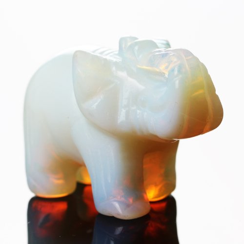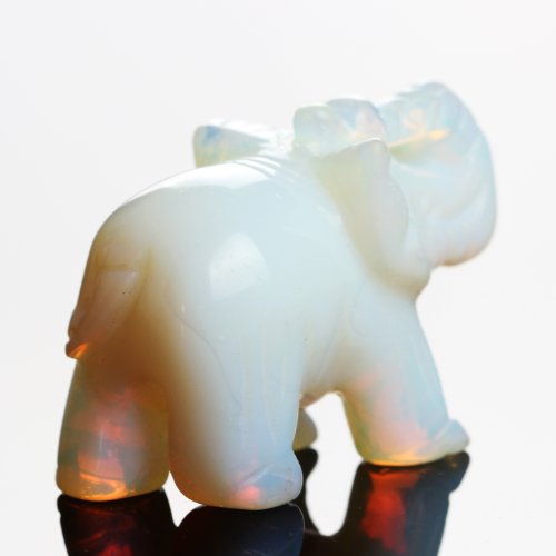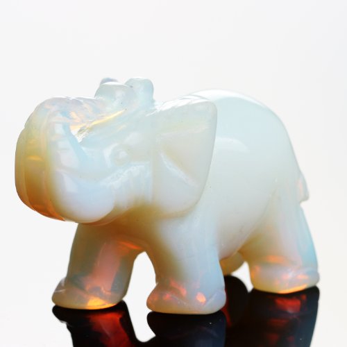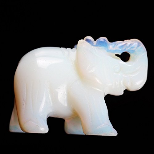 YWG Stone Opal Opalite Elephant 1.5 Inches Statue Crafts Natural Stone Carved Figurine Chakra Carving Stones Healing Reiki Free Pouch (Opal)