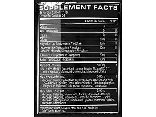When you're knee deep in sweat and the dreaded feeling of fatigue sweeps over your entire body to threaten your training, you can reach for a towel, or you can choose to push further with Alpha Amino. Upgraded Formula for improved performance: We've tailored this new version of Alpha Amino to include a well-studied 2:1:1 BCAA ratio for optimal performance in addition to 11 essential amino acids. An integral part of the Alpha Amino formula are electrolytes, which help keep your body hydrated and ready to tackle any challenge. Amazing flavor without the sugar: When you're not training or recovering, you can still reap the benefits from Alpha Amino. When water just won't cut it, don't reach for a sugary sports drink, grab some Alpha Amino for a flavorful, sugar-free way to hydrate. Electrolytes for hydration: You can't perform your best if you're dehydrated and depleted of important minerals. Hydration is an underrated but key component of optimal performance, which is why we've upgraded the Alpha Amino formula to include electrolytes AND Beta Power. It is a natural and scientifically studied ingredient that improves hydration, protects against cell stress during intense activity, and even boosts physical performance - especially strength, power and muscle endurance. Enhanced Recovery: After a grueling workout only two things matter: replenishment and recovery. Replenishing lost minerals and electrolytes while fueling your muscles with amines can help fight muscle breakdown during recovery.Feature