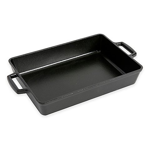 -. Feature : Artisanal Kitchen Supply 13-Inch Pre-Seasoned Cast Iron Roast Pan boasts ultra-durable functionality to deliver a lifetime of use on all heat sources / Cast iron construction provides even heat distribution and superior heat retention / Twice-seasoned interior cooking surface is ready for instant utility and offers natural food release / Compatible with all cooktops, including induction stoves and the barbecue grill / Measures 13" L x 9" W x 3.5" H