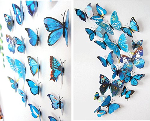 Totally 72 pcs different models 3D butterflies,include Blue,Purple,Green,Red,Pink and Yellow 6 colors.