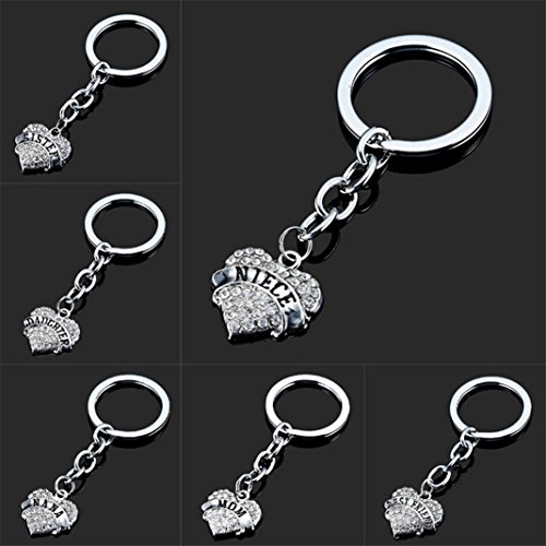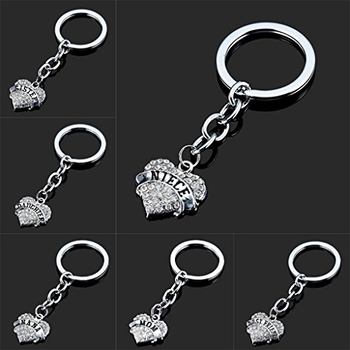 Studio : super1798 Publisher : super1798 Binding : Apparel Product Description Specifications: Cute heart shape with family letters carving design keychain, very convenient to use. Decorated with shiny rhinestones, very stylish. Also great for bag hanging ornaments. Type: Key Chain Gender: Women's Style: Fashion Material: Alloy, Rhinestone Occasions: Gift, Souvenir, Daily Life, School, Travel, etc Features: Bag Pendant, Heart Shape Pendant, Family Letter Carving Size: 1.7cm x 1.6cm/0.67" x 0.63" (Approx.) Ring Outer Diameter: 2.5cm/0.98" (Approx.) Ring Inner Diameter: 2cm/0.79" (Approx.) Notes: Due to the light and screen setting difference, the item's color may be slightly different from the pictures. Please allow slight dimension difference due to different manual measurement. Package Includes: 1 x Key Chain