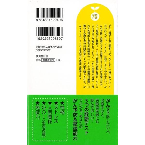 【商品説明】 定価(税込み):918円 値引き:5% OFF 「ストレスは万病の元」と言われ、ストレスにうまく適応できないと免疫力が低下し、「がん」が進行する。また「ストレスにうまく適応できる性格」が、がん予防と治療につながる。性格=「こころの特徴」が免疫や病気とどう結びつくかを解き明かし、対処法を指南する。 バーゲンブック 新品 特価 格安 ビューティー&ヘルス 健康法 長寿 健康 ビューティー ヘルス | |
